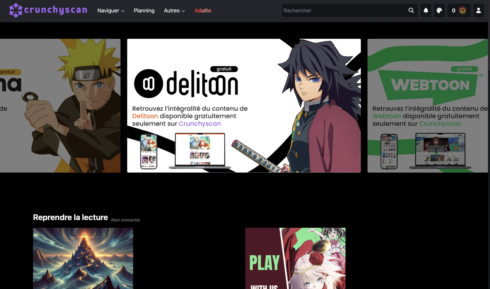 • Crunchyscan est une plateforme populaire de lecture de mangas en ligne.