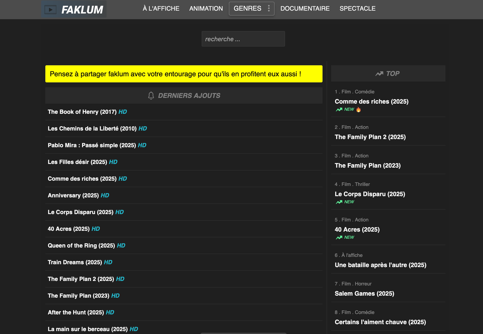 Comme tous les meilleurs sites de streaming gratuits, Faklum ajoute rapidement :